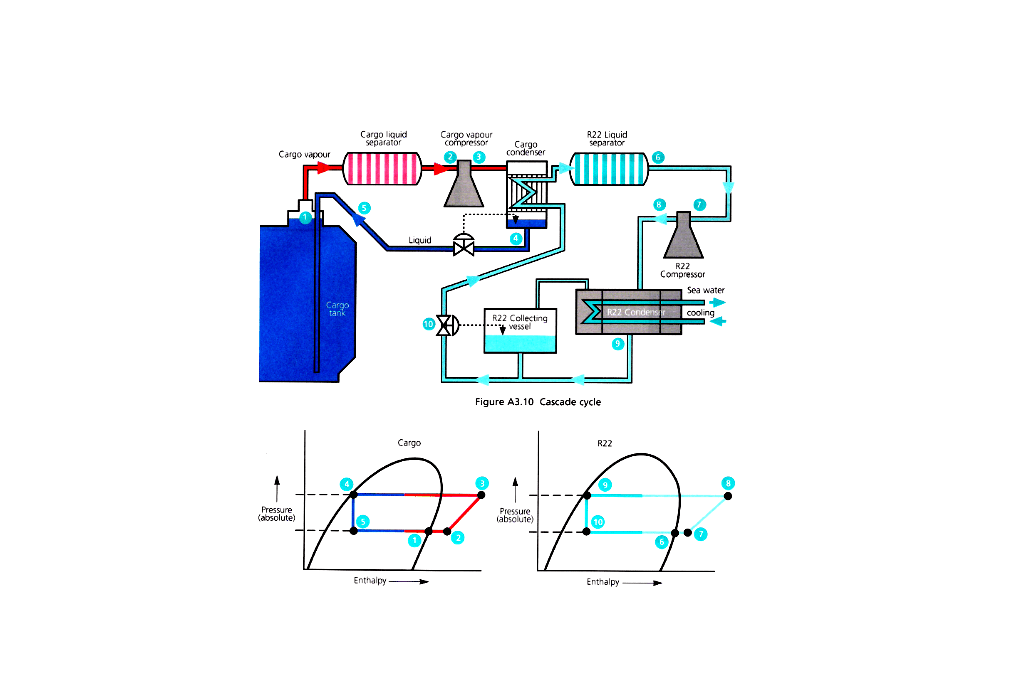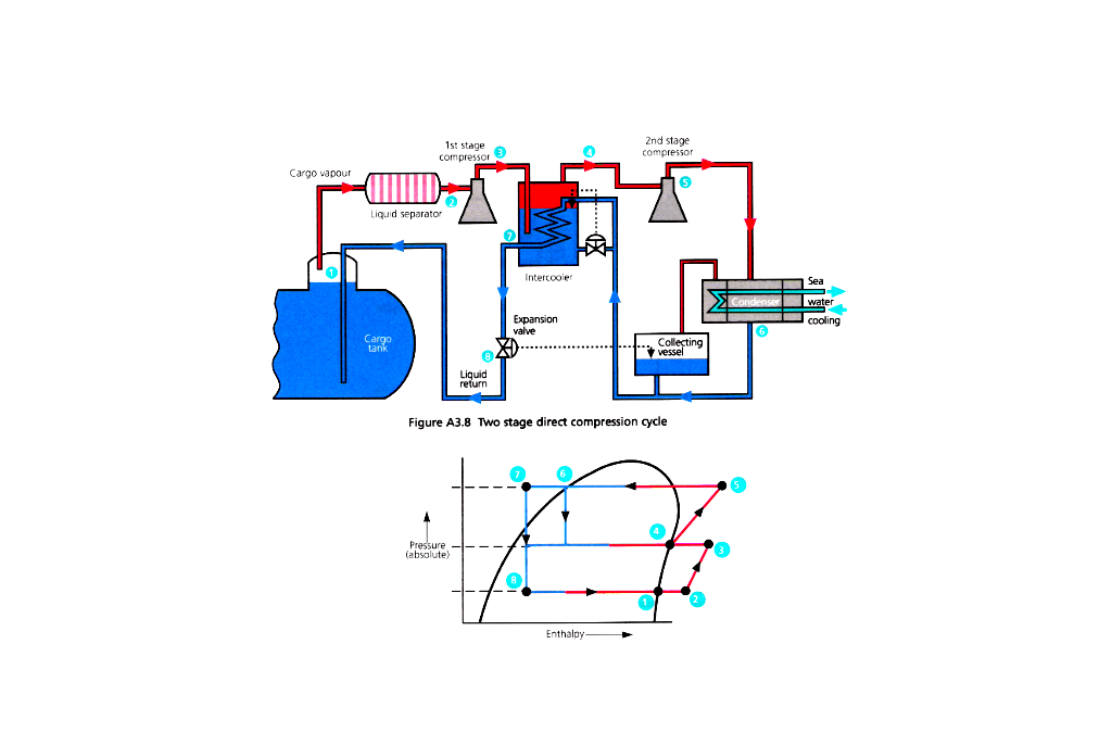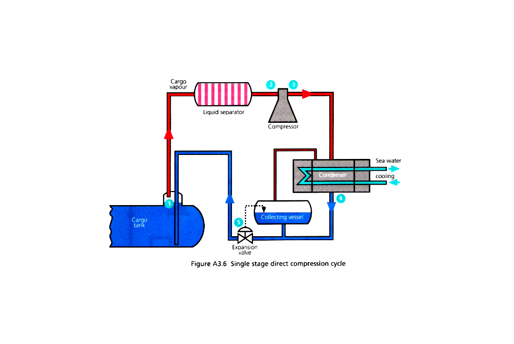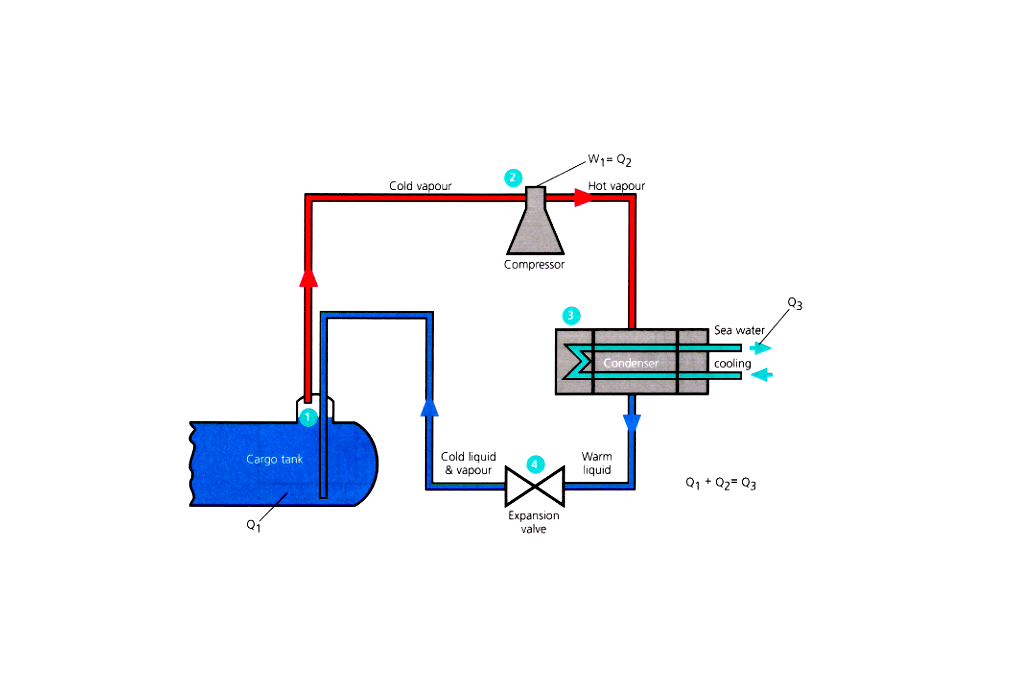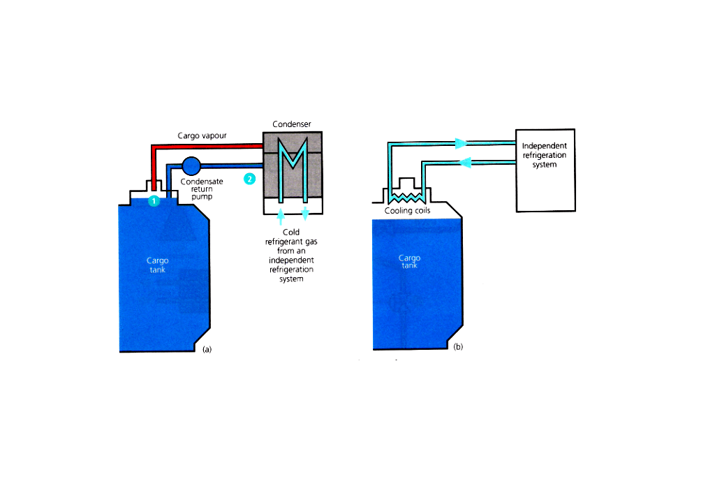 - Whilst at sea, to prevent the pressure rising in the tanks due to the cargo taking in heat through the tank insulation, then the vapour can be condensed and returned to the tank.