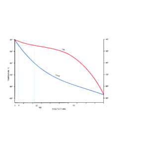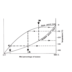 If a mixture of 75% butane is heated it boils at -15ºC. Vapour in equilibrium at this temperature has a composition of about 50% butane. If this vapour is condensed, it will give a liquid that will boil at about -27ºC. Vapour equilibrium at this temperature has a composition of about 25% butane.