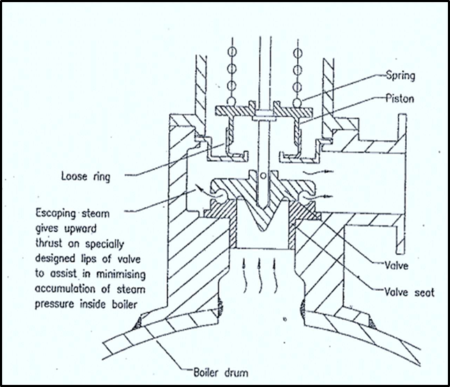 - It must me designed so that, under full firing conditions of the boiler and with the steam stop valve shut the valve must lift sufficiently so that the pressure does not rise above 10% of designed blow-off pressure i.e. valve should not allow steam to accumulate.