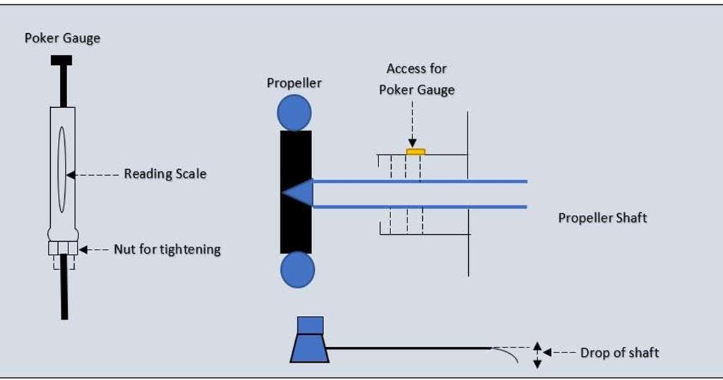 - Propeller drop is measured by POKER GUAGE during dry dock.