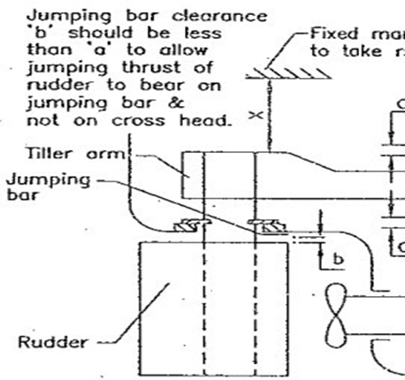 - By keeping jumping bar clearance lesser than the clearance at the cross head, the impact force of the rudder when it jumps will be taken by the jumping bar and not by the cross-head.
