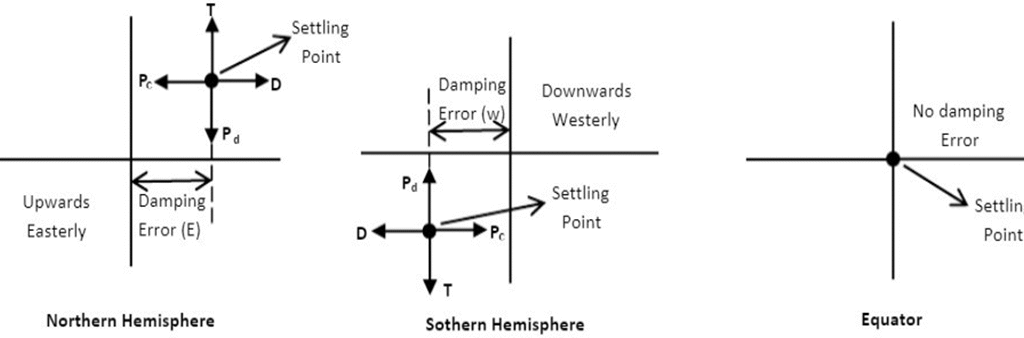 Damping error in a gyro compass /settling error of a Gyro compass damped in Tilt /latitude error.