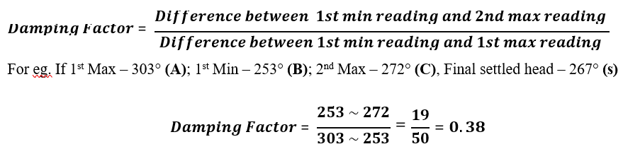 Damping Factor / Percentage damping / Period of compass / Settling position of compass