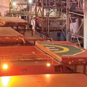 On such ships, the cargo is loaded by chutes and generally discharged by large grabs. Unlike on a general cargo ship, there is no involvement of labourers for stowing or securing the cargo. Hence, in order to ensure that the cargo being loaded reaches all the corners of the hold and the grab conveniently picks up the cargo from all over the hold, it becomes necessary to increase the size of the hatchway as shown in the cross- sectional drawing above.