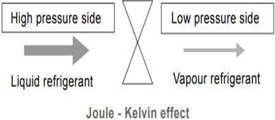- When the refrigerant flows from through an orifice, i.e. from high pressure side to low pressure side, there is a drop in pressure.