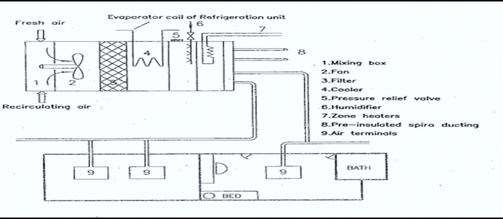 - Several central units are used to distribute conditioned air to a number of cabins or spaces via a single pipe or duct.