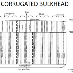 The ship girder is, therefore, specially strengthened at the ends by means of “panting” beams, thickened plating, “breast hooks”, “crutches”, closer spacing of frames, stringers, deeper floors, etc., to enable the shell plating to resist its tendency to flexibility when subjected to panting stress. The concentration of heavy weight along the middle line of the hold introduces a collapsing stress, which tends to draw the two sides of the ship together.