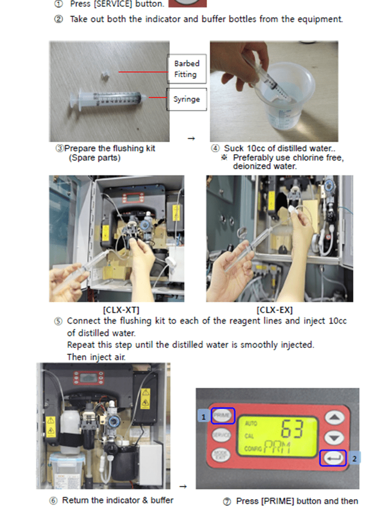 1) How to use the flushing kit for manual priming.
