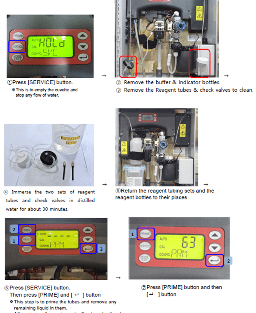 3. Flush off the reagent tubes and check valve lines.
