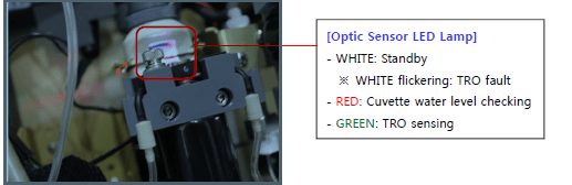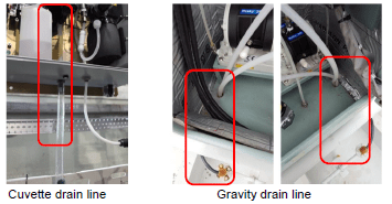 -If the drain apparently has any trouble, check if the cuvette drain line is clogged. If necessary, flush it off.