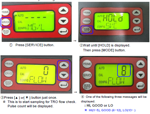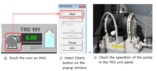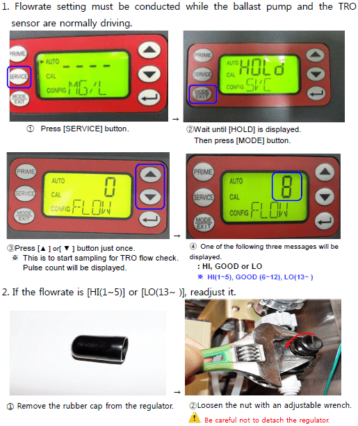 1. Flowrate setting must be conducted while the ballast pump and the TRO sensor are normally driving.