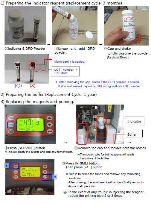 3) After replacing reagents (Buffer and Indicator), initialize the replacement cycle setting.