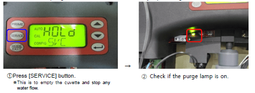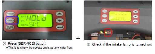 - If the intake lamp is turned on, check if sample water is normally inflowing through the drain line.