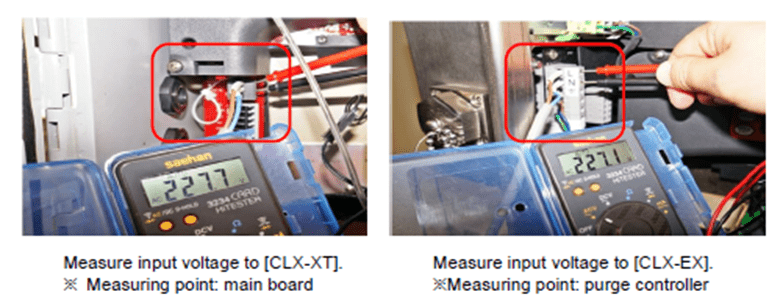 Measure the output voltage of the purge controller. (Normal voltage: AC220V~240V)
