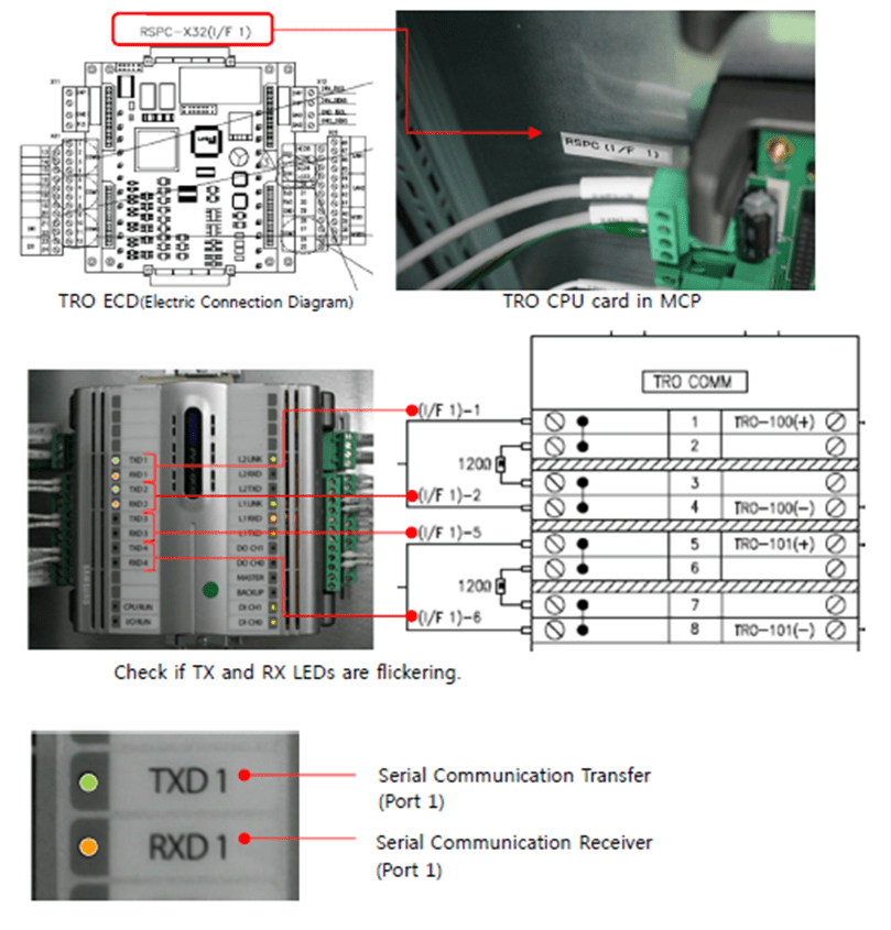 1) Referring to the ECD(Electric Connection Diagram), check if the CPU card lamps are flickering. (In normal condition, both TX and RX are flickering.)