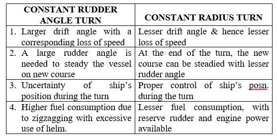 Once the Master has decided on the radius of turn, a tabular ready reconer may be prepared for various course change angles.
