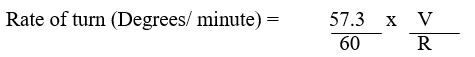 Rate of turn = (V / R) x 0.96 where V = speed of vessel